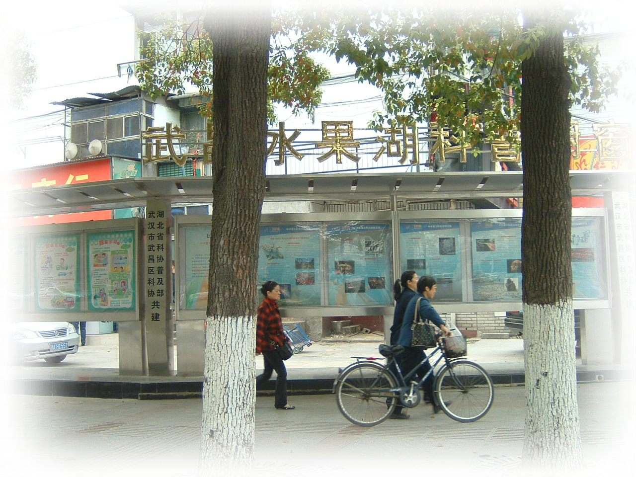 图片展示橱窗处于水果湖繁华的街区,附近聚集了大量政府机关企事业团体和中小学校,街区人流量大,平均每天超过2万人,展览受到附近单位工作人员以及武汉市民的积极响应,参观者络绎不绝,反响热烈,深受欢迎。